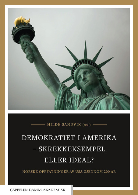 I Demokratiet i Amerika – skrekkeksempel eller ideal? ser forfatterne nærmere på norske oppfatninger av USA gjennom 200 år, fra de første utvandrernes beretninger, via skildringer av strid mellom arbeid og kapital, inspirasjon fra sterke yrkeskvinner og beundring for amerikansk opprustning mot Hitler, til motstand mot amerikansk politikk og kulturimperialisme i tiårene etter andre verdenskrig. Det amerikanske demokratiet kunne framstå som et ideal til etterfølgelse, men også som et eksempel til skrekk og advarsel.