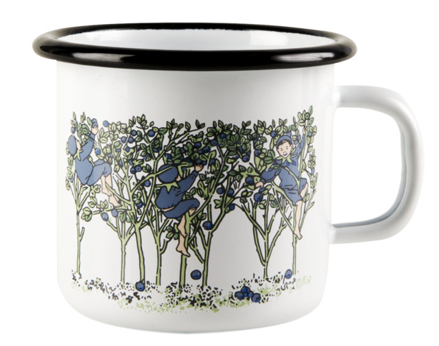 Motiv fra Elsa Beskows klassiske barnebok fra 1901 om Putte som drar til skogen for å plukke bær til mors fødselsdag, men finner ikke et eneste bær. Da møter han Blåbærfar! Kruset er i emaljert metall og rommer 2,5 dl.