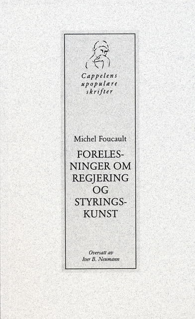 Mot slutten av sitt liv viet han imidlertid også mye tid til en annen maktform enn disiplinering, nemlig det han kalte gouvernementalité, her oversatt med regjering. Mot slutten av europeisk middelalderen vokser det frem et samfunn mellom kongen og hans undersåtter. Dette samfunnet må styres indirekte. I de tre forelesningene som presenteres her analyserer Foucault de historiske handlingsbetingelsene som muliggjorde en slik indirekte styringsform. Den liberale stat, som i stor grad støtter seg på indirekte regjering, vil i følge Focault støte på en sentral utfordring: hva gjør man med dem som ikke klarer å styre seg selv? Dette spørsmålet taler direkte til dagens politiske ordskifte, der nyliberalisme og globaliseringprosesser står sentralt.