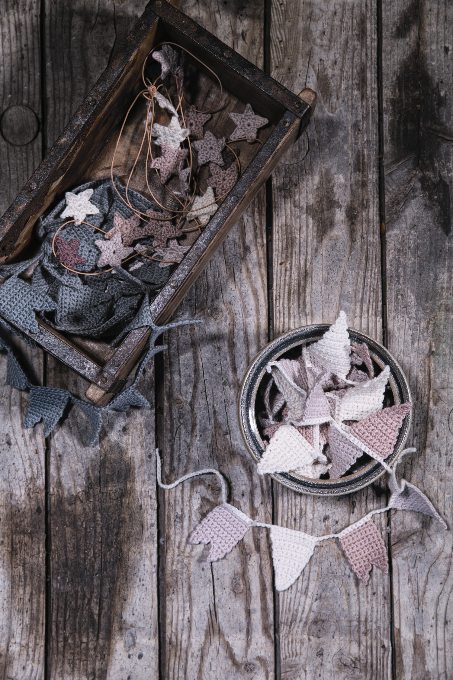 Boka har oppskrift på tolv ulike julepynt i ulik vanskelighetsgrad. Om du trenger hjelp til noen masker eller sting, finner du filmer på www.hobbyklubben.no. Bakerst i boka er det sjablonger.