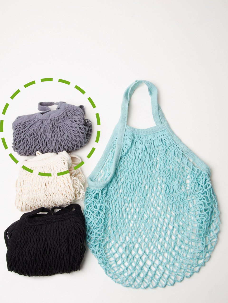Trendy nett som kan brukes både som handlenett og som veske. Heklet i bomull med håndtak i solid polyester.