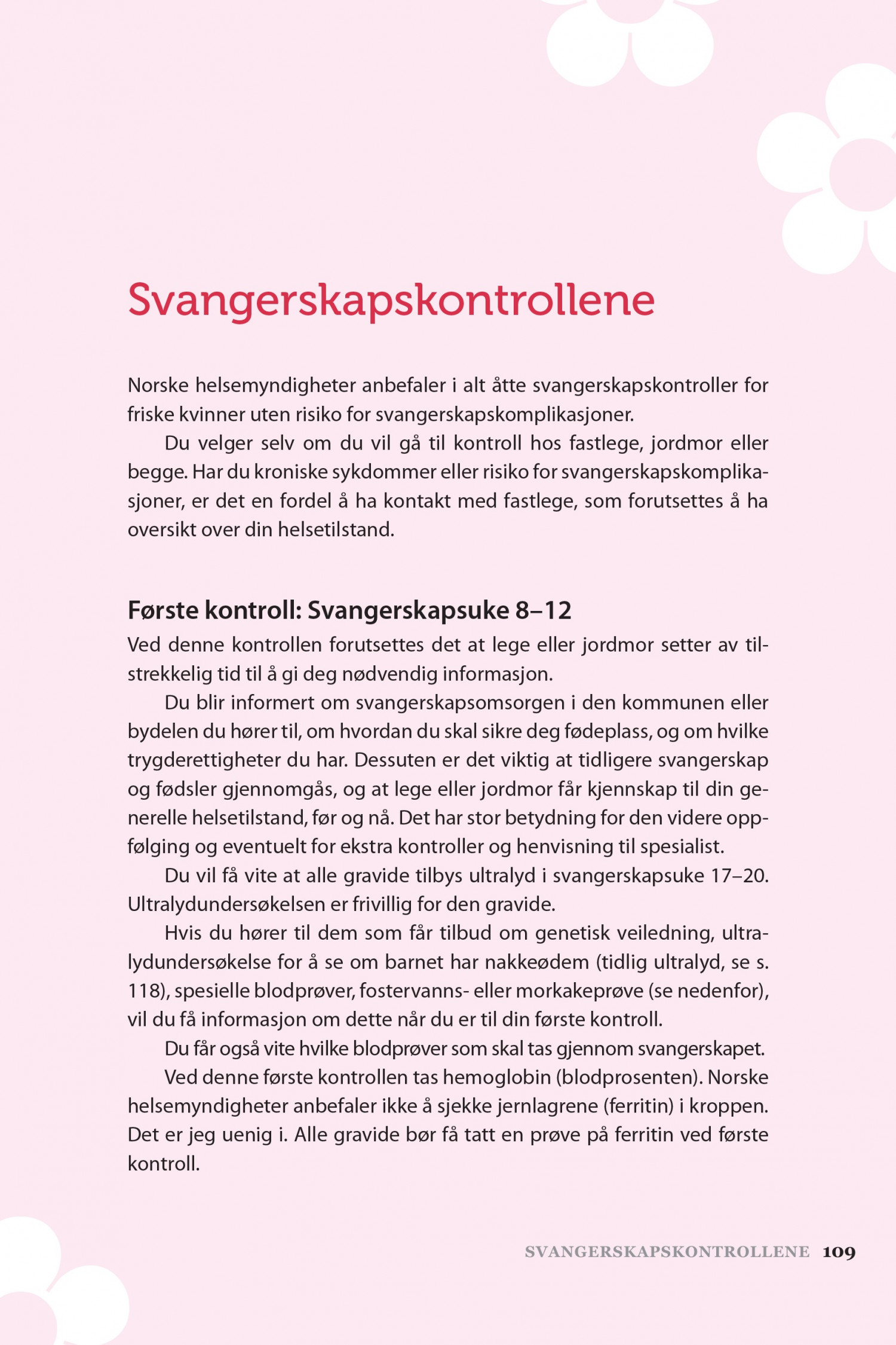 • En stor medisinsk oppslagsdel gir en fullstendig oppdatert oversikt over dagens svangerskapsomsorg og -kontroller i Norge og hva du som gravid kan vente deg fra første dag av svangerskapet.