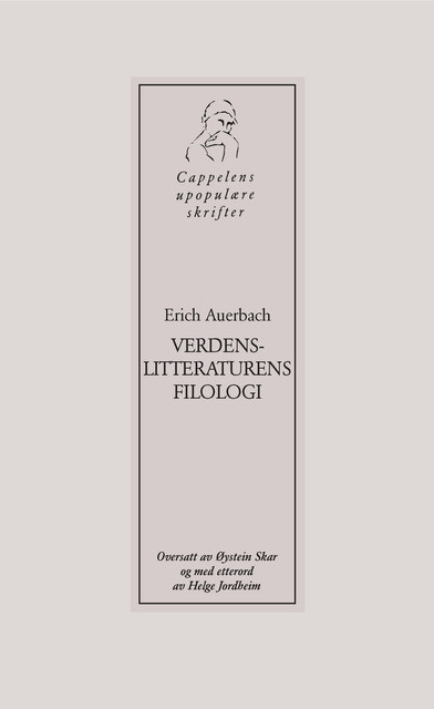 Den tyske filologen Erich Auerbach (1892-1957) er forfatteren av storverket Mimesis, som handler om virkelighetsfremstillingen i Vestens litteratur gjennom tidene. Essaysamlingen Verdenslitteraturens filologi viser bredden i Auerbachs forfatterskap. Her reflekterer Auerbach over sin egen arbeidsmåte, den filologiske nærlesningen. For ham er lesing av litteraturhistoriens store verker en vei til å forstå "det allmennmenneskelige" - det som overskrider nasjonale grenser og historiske epoker.